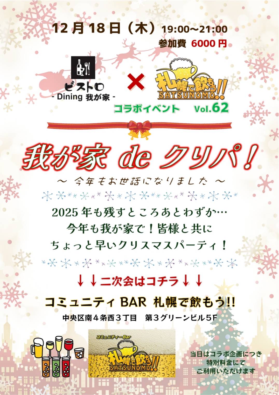 札幌市中央区の『ビストロDining我が家』と『札幌で飲もう』のコラボ企画。
