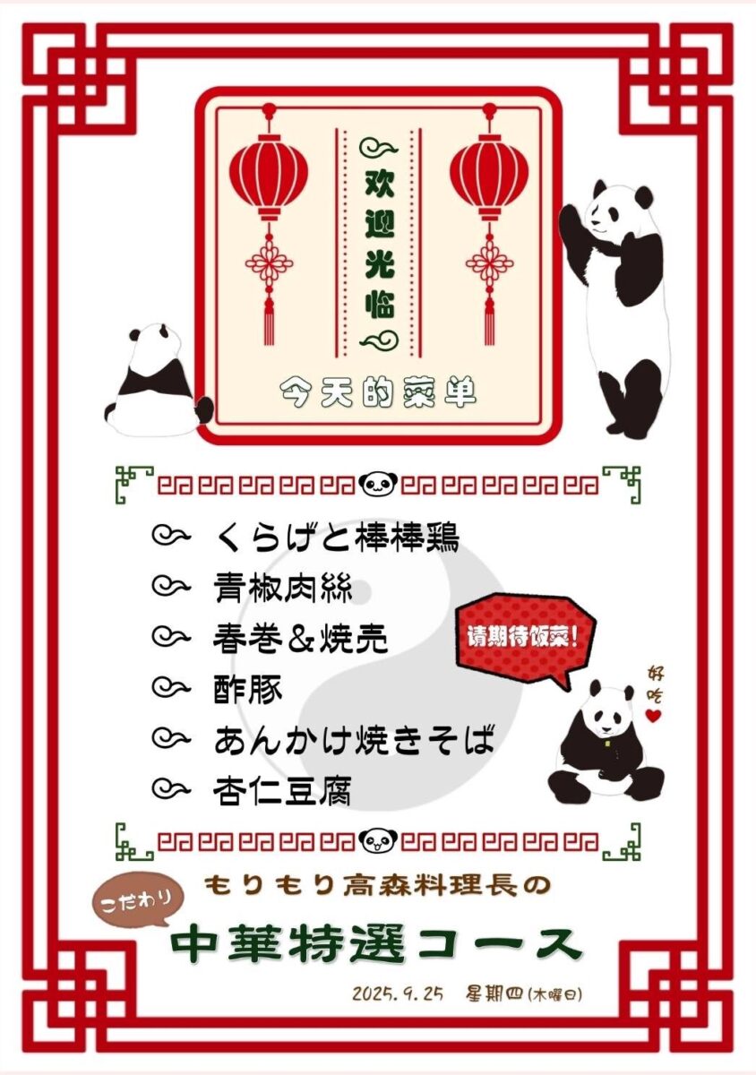 高森中華料理長お招きしまして皆様へ 本場中華の味をお楽しみ頂きます♪