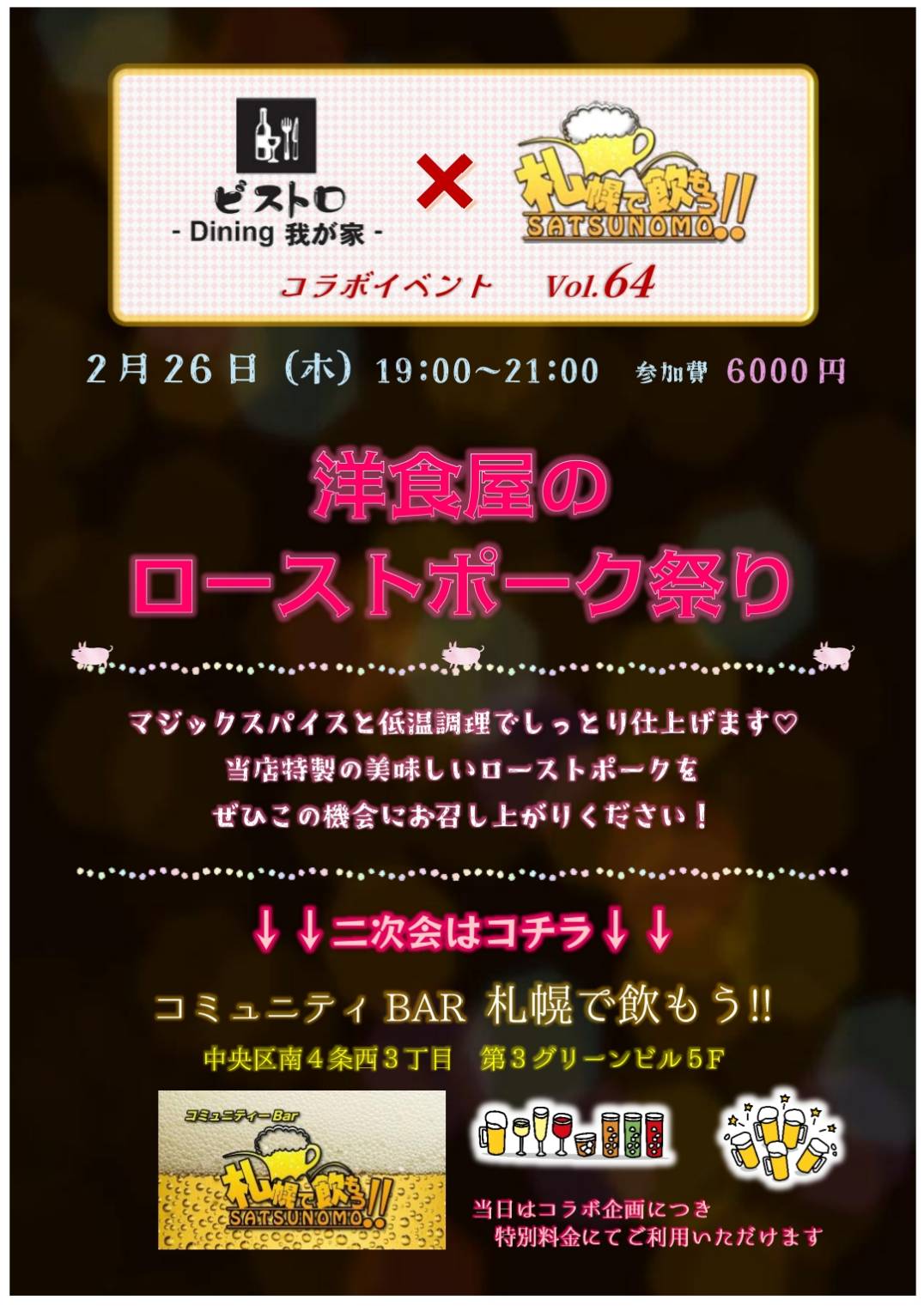 札幌市中央区の『ビストロDining我が家』と『札幌で飲もう』のコラボ企画。