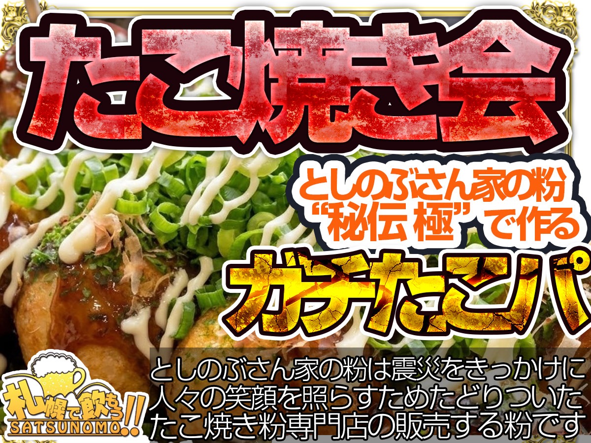 【2026年4月16日木曜日 19時〜21時】たこ焼き会 〜 としのぶさん家の粉 “秘伝 極”で作るガチたこパ 〜