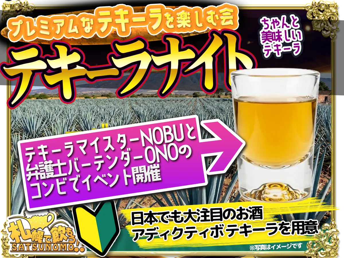 2026年5月8日(金)19時~21時に、すすきのにある札幌で飲もう!!コミュニティBARで「プレミアムなテキーラを楽しむ会」が開催されます。
