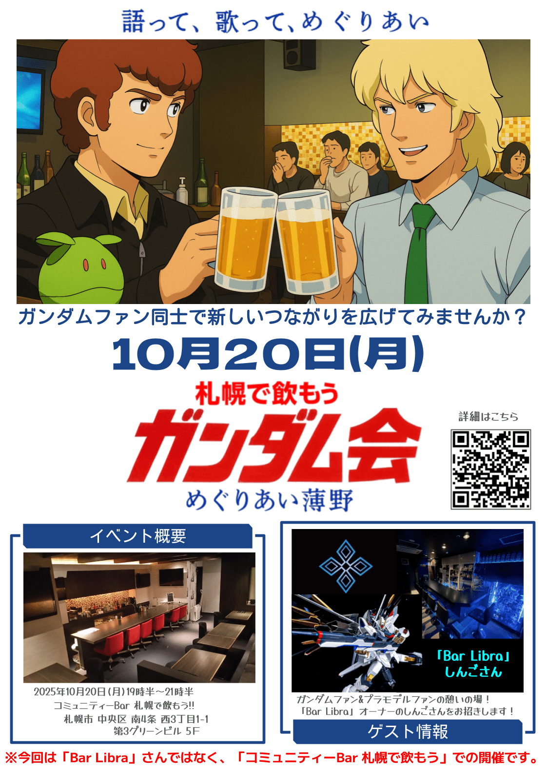 ※今回は「Bar Libra」さんではなく、「コミュニティーBar 札幌で飲もう」での開催なのでお間違えの無いようにお願い致します。